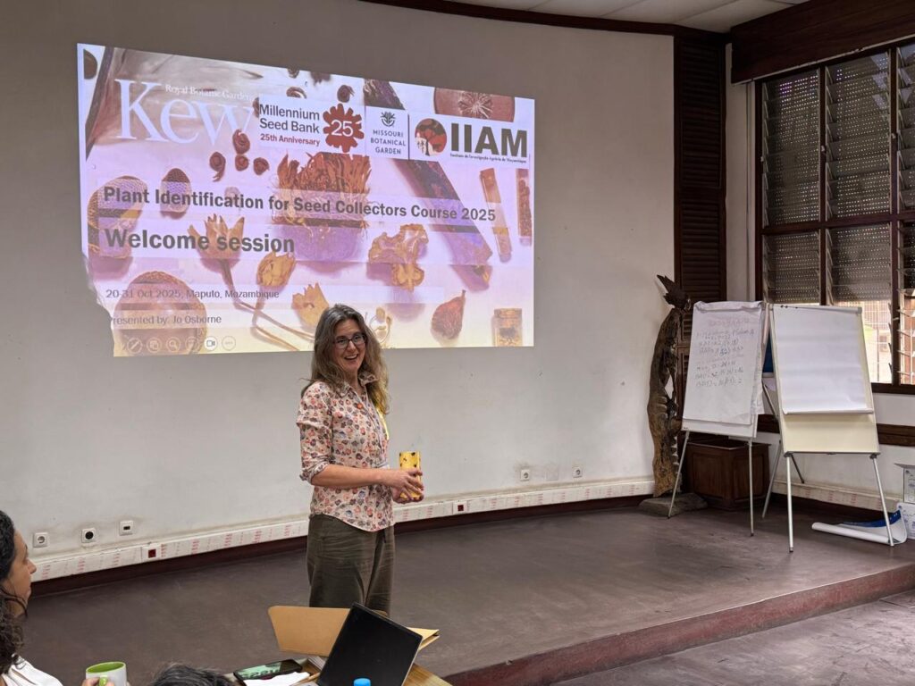 Técnicos do Instituto de Investigação Agrária de Moçambique (IIAM) da rede de sementes silvestres, participam no curso de Identificação de Plantas Tropicais organizado pelo IIAM e seus parceiros da Royal Botanic Gardens – Kew, Millennium Seed Bank e Misssouri Botanical Garden. No acto de abertura oficial do evento, o Dr. Constantino Senete, Director Técnico da Direcção de Agronomia e Recursos Naturais em representação da Senhora Directora Geral, Professora Zélia Menete, agradeceu a presença de todos, em especial aos parceiros por contribuírem de forma incansável para o fortalecimento da rede de sementes silvestres no país, igualmente destacou a importância do curso para a instituição, pedindo a participação activa dos técnicos. O curso que decorre de 20 à 31 de Outubro no IIAM sede, conta com a participação de 15 de entres técnicos da rede de sementes silvestres, herbário e banco de germoplasma do IIAM. O treinamento visa dotar os técnicos de conhecimentos e habilidades que os permita identificar as plantas, particularmente 57 famílias de plantas do grupo angiosperma. Durante a primeira sessão, foram feitas apresentações em torno do conteúdo do curso e importância da identificação de plantas no contexto de desafios actuais como mudanças climáticas, perda de biodiversidade e insegurança alimentar. Foi também feita uma visita ao herbário do IIAM (LMA), e explanada a sua importância como banco de referência para identificação de plantas e preservação de biodiversidade. Esta iniciativa enquadra-se na visão do programa nacional de conservação de sementes da flora moçambicana, que objectiva o reforço da capacidade técnica, conservação da biodiversidade, sobrevivência das espécies a longo prazo, contribuição na investigação, revitalização do herbário, restauração de habitats degradados e garantia da segurança alimentar e nutricional.
