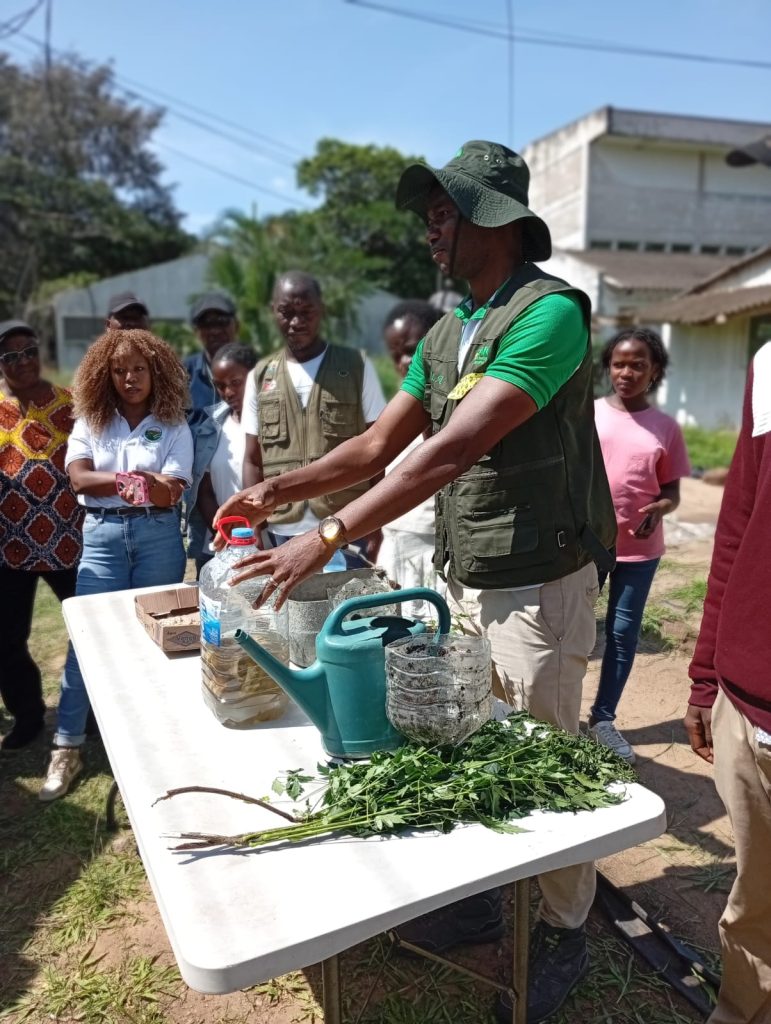 Durante a demonstração, o Eng. Atumane Nuro, investigador do IIAM, apresentou várias técnicas de cultivo que substituem materiais convencionais por alternativas recicladas. Entre elas destacam-se a utilização de garrafas PET, pallets e pneus para o cultivo de hortícolas, chás e ervas aromáticas. O investigador explicou ainda métodos de preparação de pesticidas naturais e compostos orgânicos, demonstrando técnicas de controlo de pragas e de melhoria da fertilidade do solo, sem recurso a agro-químicos. Segundo o Eng. Nuro, estas práticas permitem produzir muitas hortaliças em área pequena, reduzir significativamente o volume de resíduos enviados ao aterro sanitário, contribuindo também para a diminuição das emissões de gases de efeito estufa e para o incentivo à adopção de sistemas de produção ecológicos no município de Maputo e outras áreas urbanas.